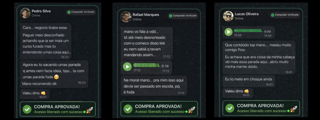“Eu estava passando por um vazio muito grande e sentindo que minha mente estava fraca. Parecia que eu estava perdendo tempo na vida e não entendia o que estava acontecendo comigo. O guia me ajudou a enxergar padrões emocionais que eu nunca tinha percebido antes. Foi como ligar uma luz na minha mente.”
